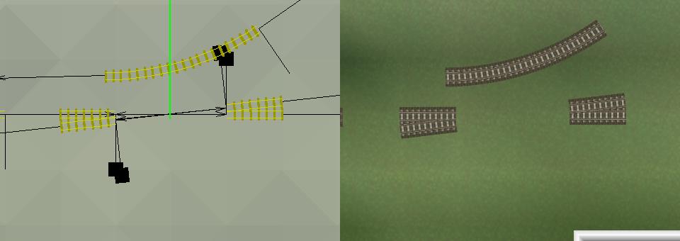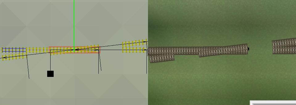 - Hilfsgleisstück löschen und zwei Weichen mit jeweils zwei Gleisen ausstatten.